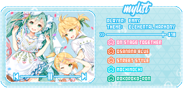Mylists must have a theme tying the decks included together. The chosen theme is up to you, and can be as loose or as strict as you wish. You can choose your favorite songs, a list of songs composed by the same producer, five decks of the same element, or another theme of your choosing.