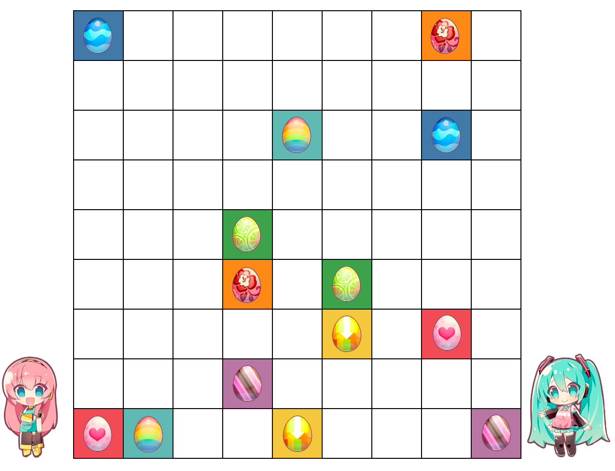 1. Each colored egg must be matched to its partner in the grid with an unbroken and unsplit path to hatch them.