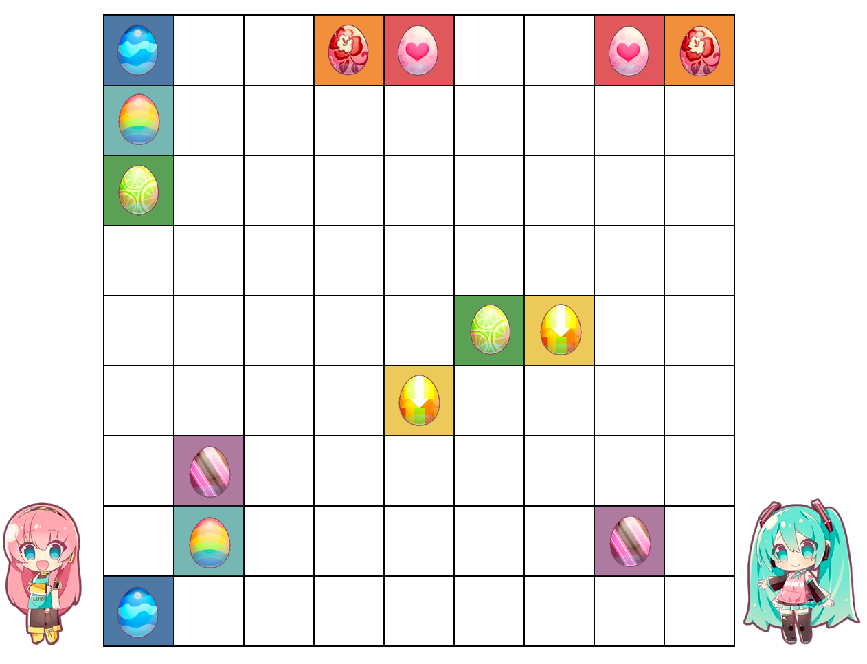 1. Each colored egg must be matched to its partner in the grid with an unbroken and unsplit path to hatch them.