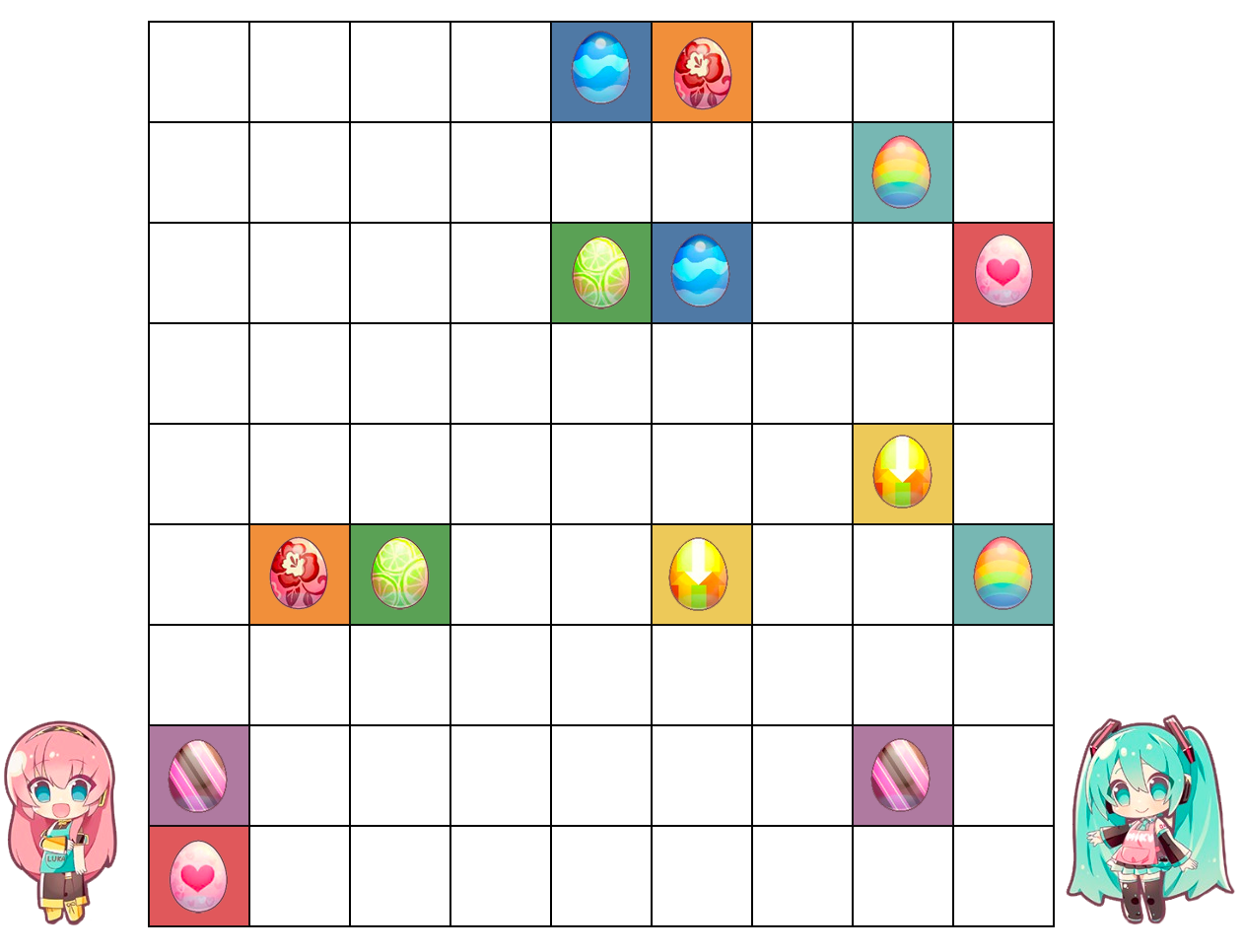 1. Each colored egg must be matched to its partner in the grid with an unbroken and unsplit path to hatch them.