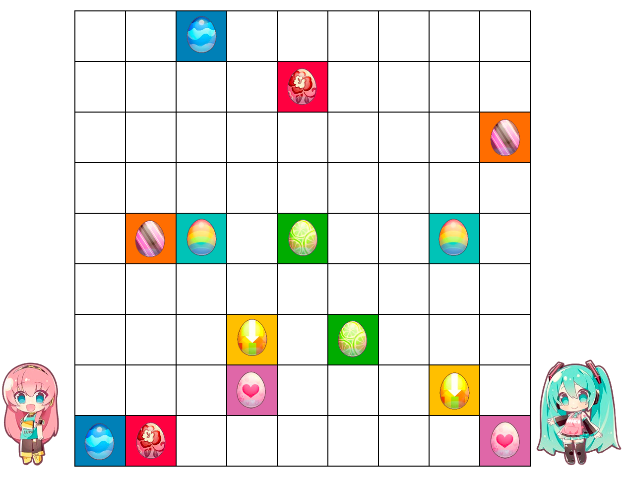 1. Each colored egg must be matched to its partner in the grid with an unbroken and unsplit path to hatch them.
